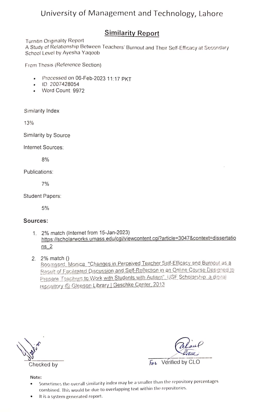 A study of relationship between teachers burnout and their self-efficacy at secondary school level