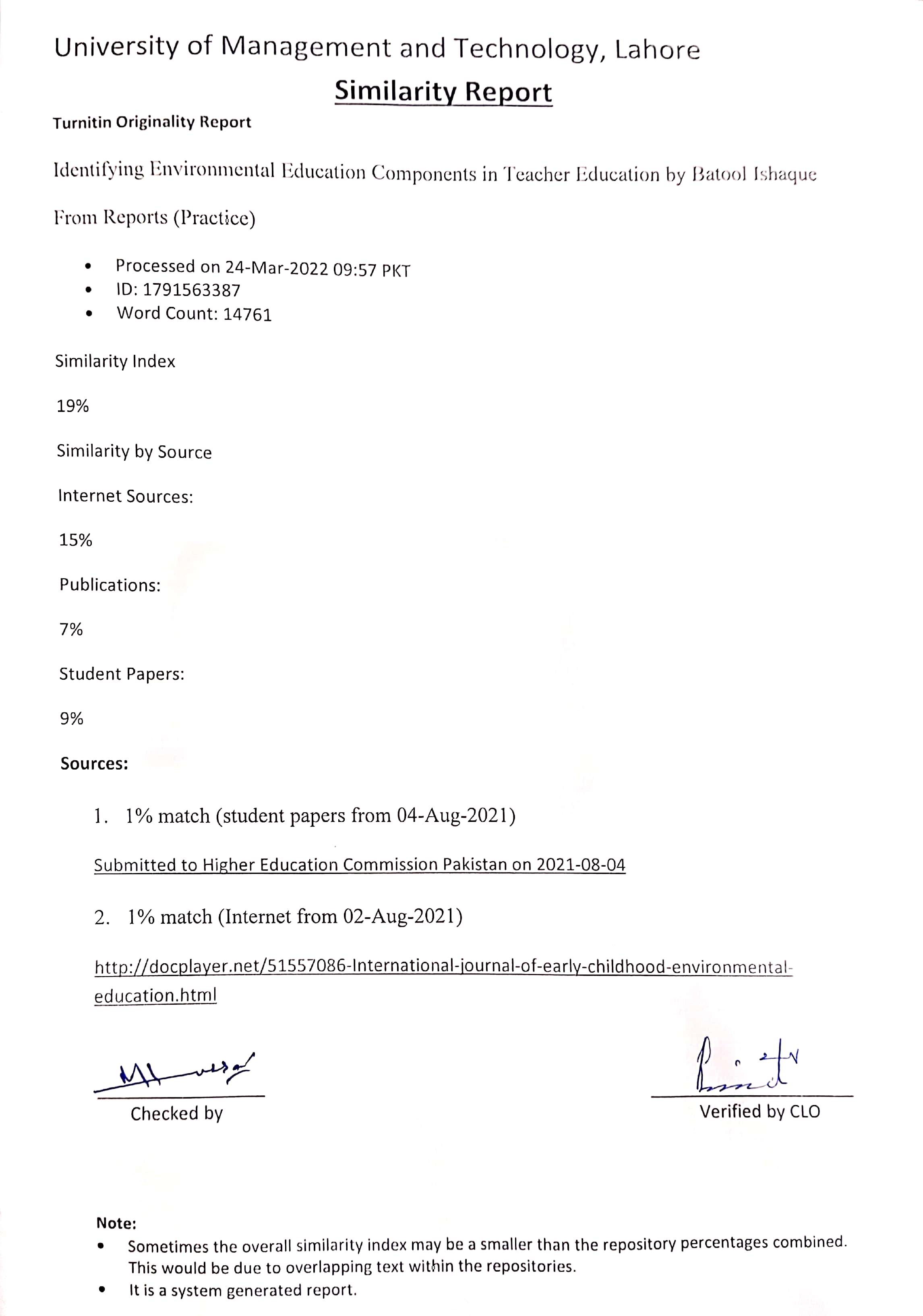 The purpose of the study is to explore the curriculum of teacher preparation program from environmental education perspective and identify the content, the pedagogical skills, reflective practice, and the skills to participate within the community. The study used directed content analysis as research design which is a deductive approach to qualitative analysis, and it starts with an existing theory or framework and utilize data to either support or construct upon that framework. The existing framework was developed by intensive study of the curriculums on Environmental Teacher Education Programs by UNESCO, NACTE and EYLAR. Purposive criterion sampling was used to study a very specific criteria which enables to study the content in depth. The B.Ed. 4 years curriculum was analyzed in the study. The analysis of the data revealed that only content knowledge for cognitive development and instructional basic methods were given major importance in the curriculum, while the content related to social emotional and behavioral dimensions were not given due importance. Similarly, the assessment was also for learning outcomes only, while assessment of teaching for reflective practice and community involvement of trainee teachers was totally ignored. It has been concluded that curriculum must cater all aspects of teaching and learning process with special focus on Environmental education, specifically those which bring changes in thoughts, beliefs, lifestyle, critical thinking, creative solution and community involvement. The findings have been discussed from various perspectives and some suggestions which are based on findings have been put forward to make the teaching learning process beneficial for sustainable environment.